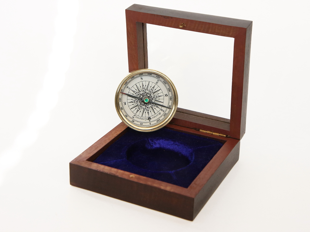 Морской компас Brunton в деревянном футляре Лого: Made for Royal Navy