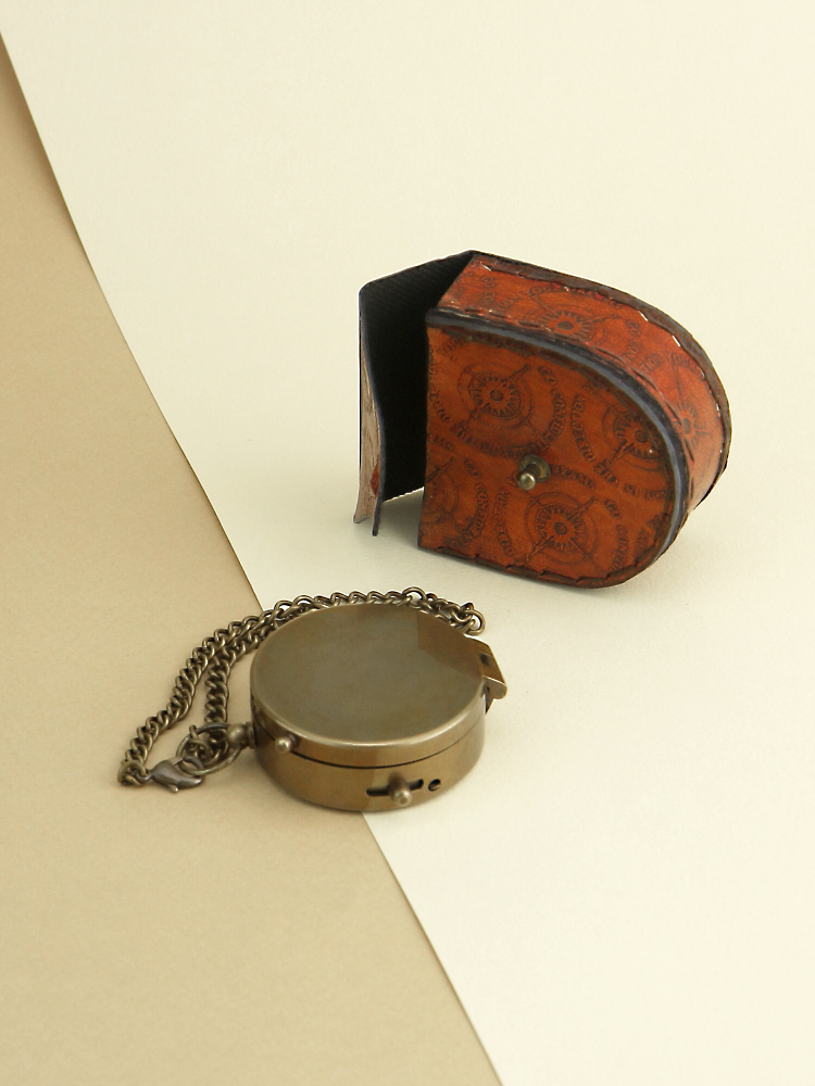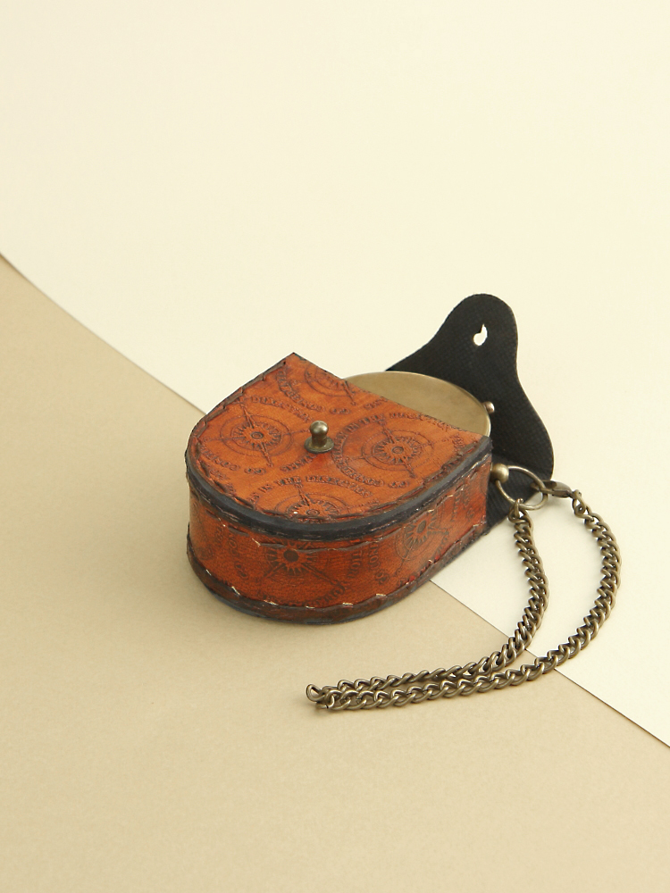 Морской компас в кожаном футляре h=4,5; D=11; d=8 см с солнечными часами