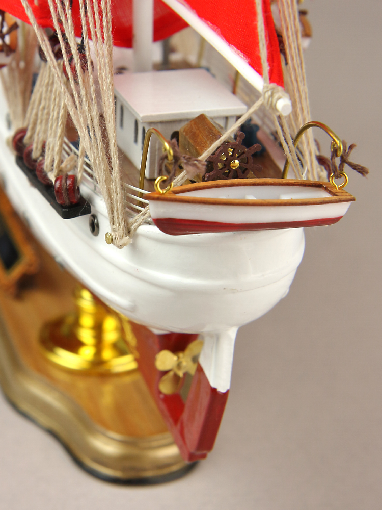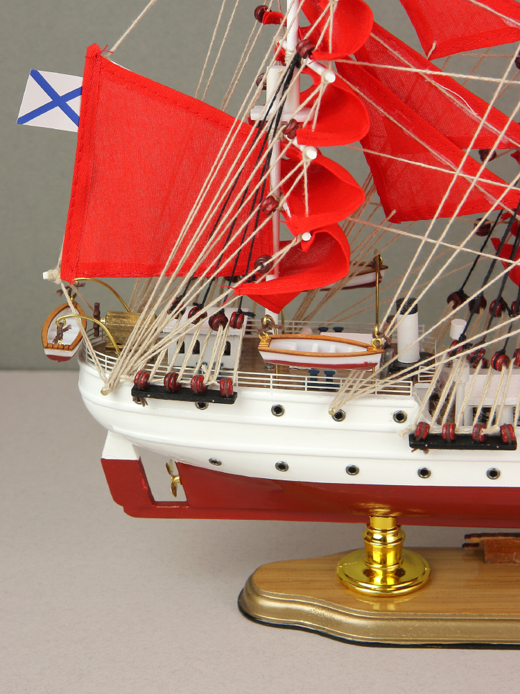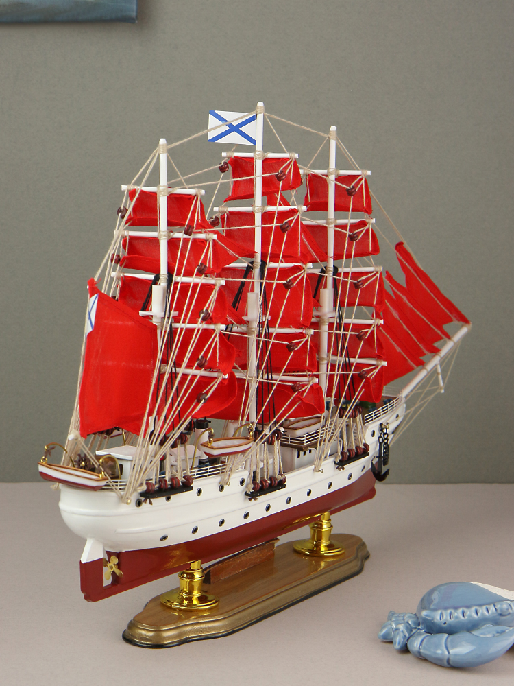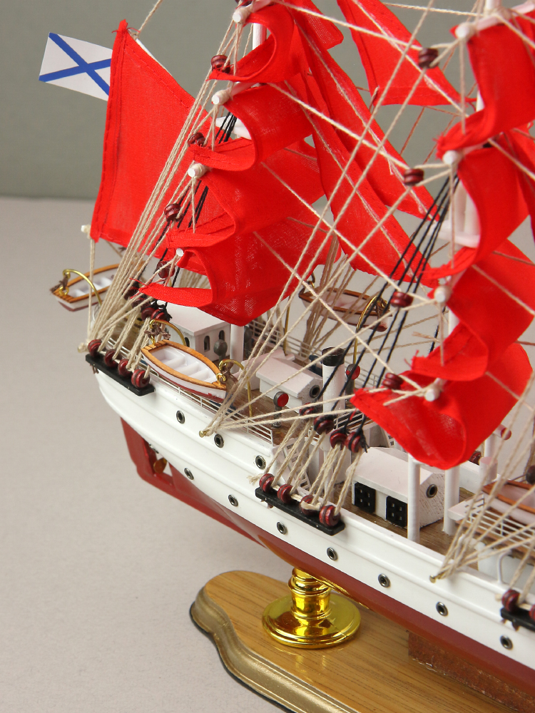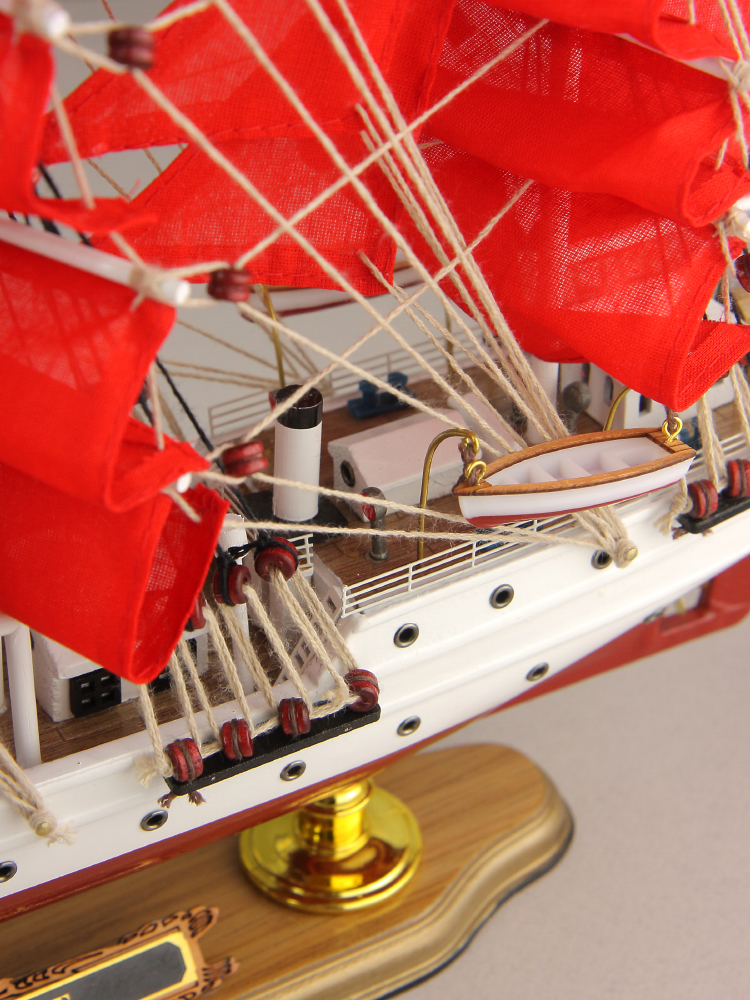 Модель парусника "Алые Паруса" помнится всем из великолепной детской сказки "Алые паруса". Всем известный корабль стал символом праздника и новой ступени в жизни выпускников. Впервые был проведен 28 июня 1968 года и отмечается для выпускников в Санкт-Петербурге и по сей день. Данное торжество собирает до 3 000 000 зрителей! Мы предлагаем вам приобрести частичку праздника и воспоминаний для ваших близких. Несомненно, что модель корабля подойдет и для начинающего коллекционера.