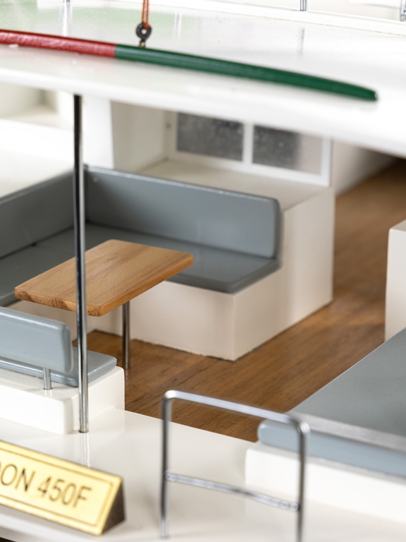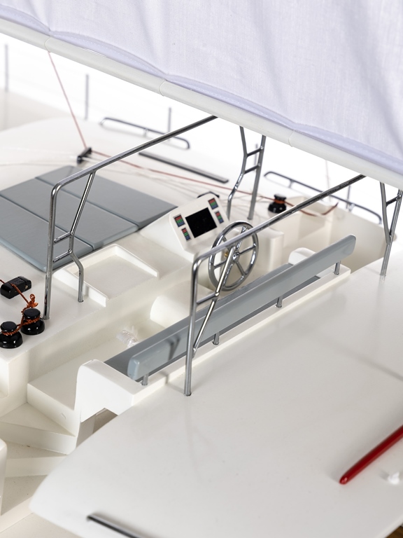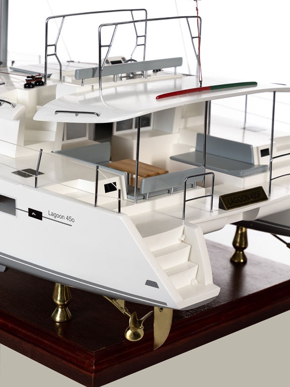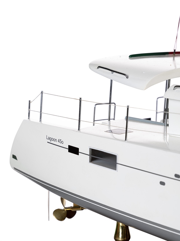 Стильная, быстрая, агрессивная, современная. Катамаран "LAGOON 450F" ассоциируется с самыми последними техническими разработками в кораблестроении. Будет идеальным предметом интерьера для современных и активных людей. Благодаря внушительным размерам сможет стать объектом приковывающим внимание в Вашем кабинете, гостиной или офисе. Может выступить в качестве оригинального подарка, человеку ценящему плавные изгибы морских судов или мечтающему о приобретении большой яхты. Выполнена в сочетании пластика и деревянных элементов. Является точной копией.