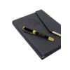 Набор подарочный ежедневник + ручка роллер представляет собой идеальный подарок для любителей организованной жизни и работы. Этот ежедневник выполнен в стильном дизайне, имеет тиснение, который отражает стремление к порядку и эффективности. Ежедневник имеет магнитный замок, удобное крепление листов- разъемный кольцевой механизм для стандартных бумажных блоков формата А5, что позволяет при необходимости произвести смену блока или увеличить количество листов. В комплект входит ручка роллер, которая добавляет особый шарм и практичность набору. Ручка выполнена из качественных материалов, что обеспечивает ее долговечность и комфорт при использовании. В набор входит также ручка, которая изготовлена из металла и пластика, корпус покрыт лаком. Нанесена лазерная гравировка в виде надписи и эмблемы. Ручка роллер подарочная с чернилами синего цвета, стержень сменный, толщина 0.7 мм.